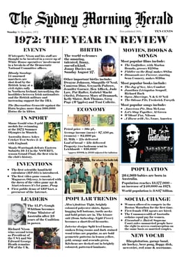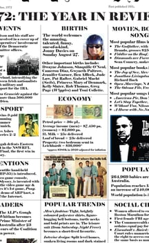 What happened the year you were born? How much did a loaf of bread cost? What major world events occured? Which famous personalities were born and/or died the same year? What was the most popular song or movie? What was invented that year?